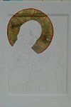 As the sacraments in their tangible reality of water, wine, bread, reveal the potential for holiness in all of creation, so also do icons. An icon is made of a wood panel covered with many layers of gesso - a white covering made of talc, marble dust and animal glue. This white ground is sanded perfectly smooth, and presents the blank slate of endless possibility, and of silent waiting. To become real the possibilities must narrow, so a drawing is done on the white board, and is etched into the surface of the board with a sharp tool. This reminds us that the image of God is etched into us, and that we are “marked as Christ’s own forever”. Then gold leaf is applied over a clay ground, reminding us that we (the clay, humus) were created capable of showing forth God’s glory (the gold). After this the painting begins. It is done in layers, working from the darkest foundational colors to the very lightest, with alternating layers of light (highlights) and color. As layer upon layer of light is added, a face emerges from the darkness. In both form and content an icon is a parable of hope, and faith in the redeeming love of our God.